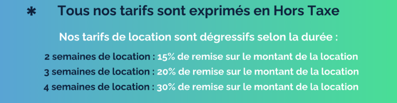 Location minimum de 7 jours calendaires pour un rendement efficace et maximum des appareils