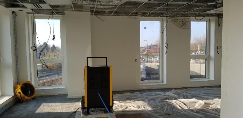 Le fait de chauffer les volumes va engendrer de la condensation , il faut alors utiliser un déshumidificateur de chantier qui va sécher l’air chargé d’humidité